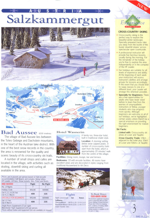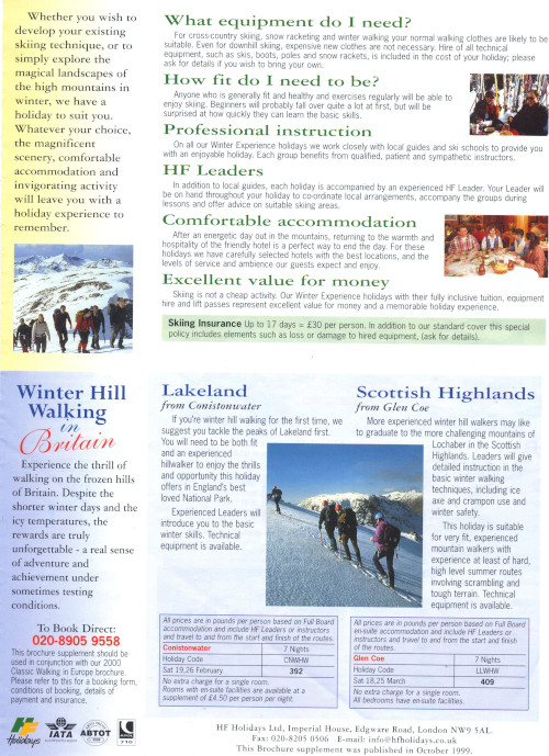 Between 1996 and 2001 HF offered both downhill and cross-country skiing holidays.