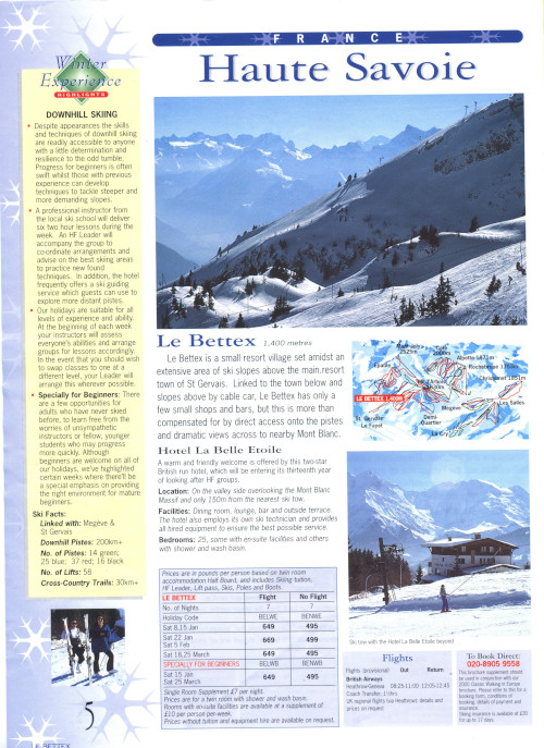 Between 1996 and 2001 HF offered both downhill and cross-country skiing holidays.