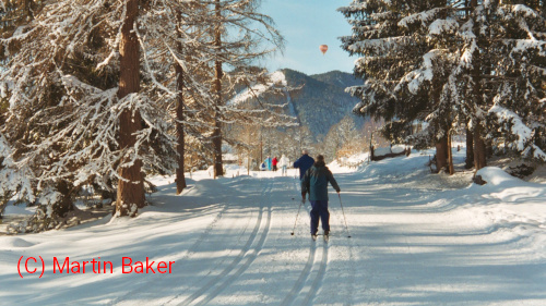 Ramsau am DachsteinI went on a HF cross-country skiing holiday 12-19 Jan 2002. By the 2001/2002 season HF had stopped offering downhill skiing so I tried cross-country. Its good being able to get into the alpine mountains in winter. |